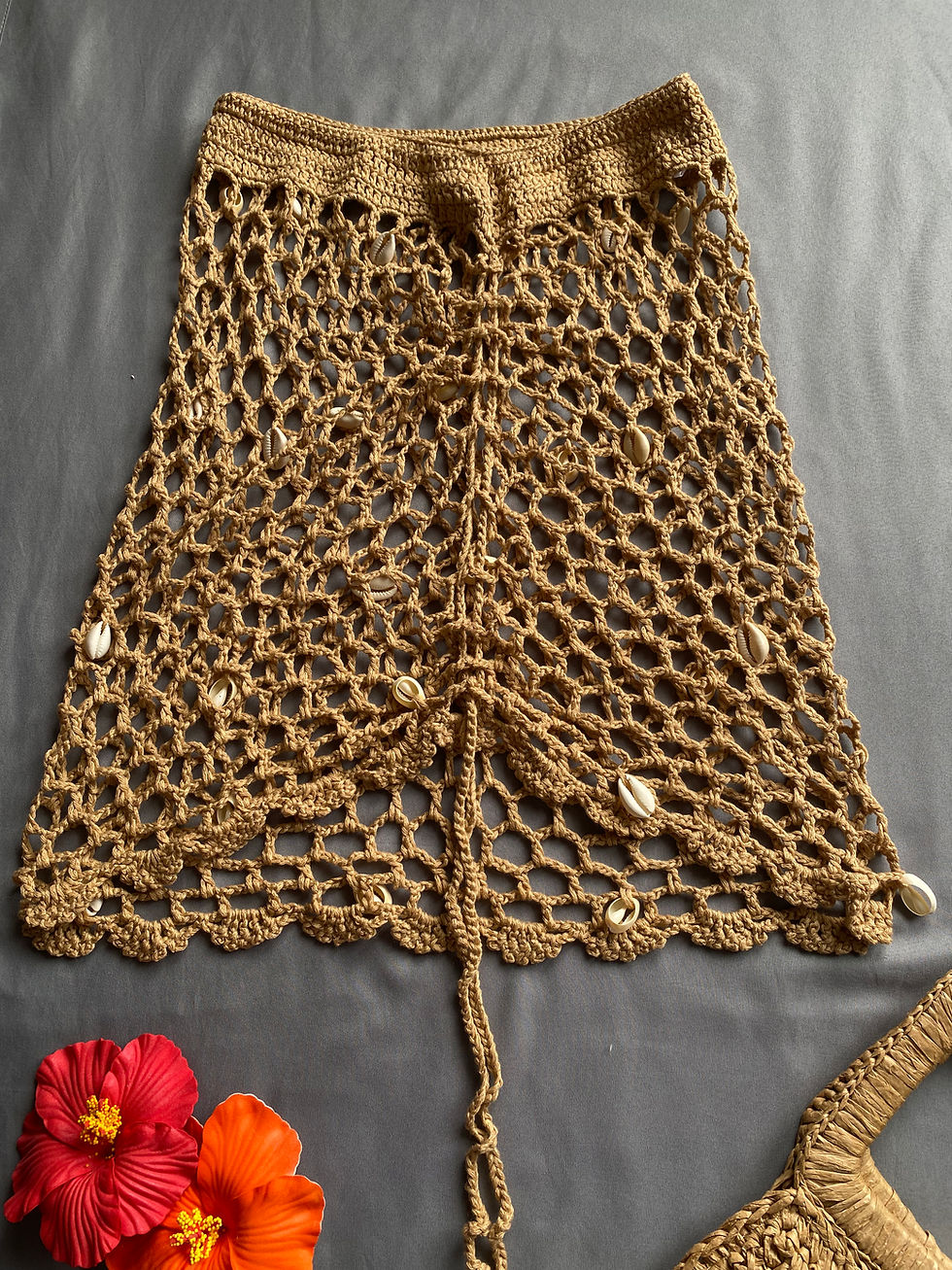 Cover corto tejido con detalles de concha